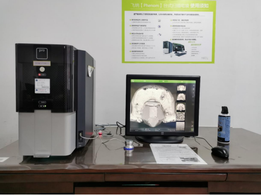 光学放大27-160X,电子光学放大130000X,分辨率优于6nm,加速电压5KV-10KV。探测器为背散射电子探测器,CeB6灯丝。