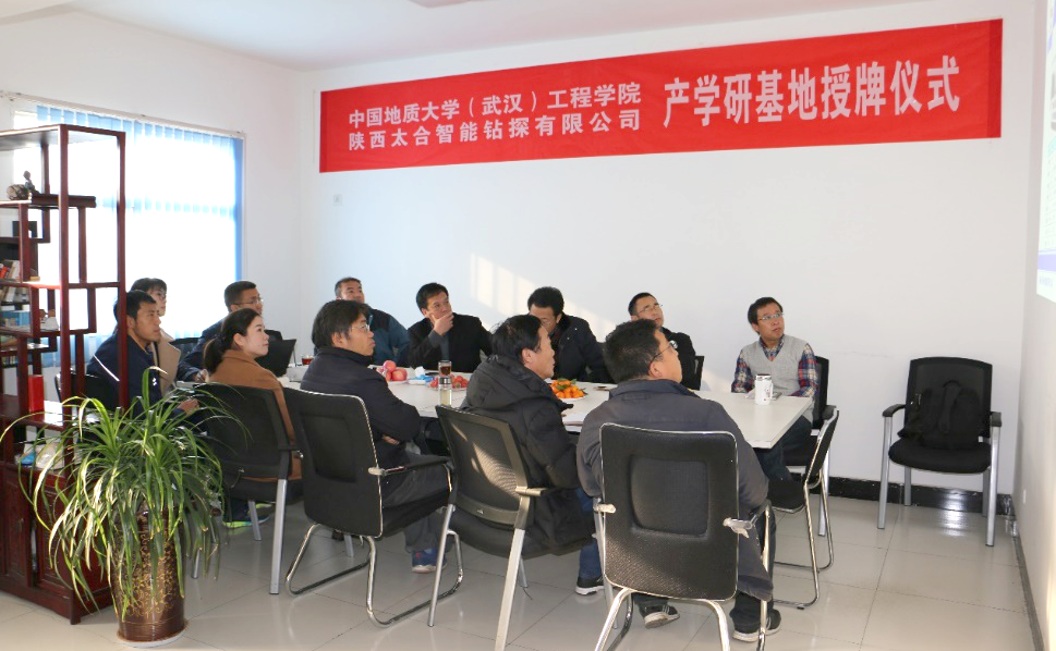 中国地质大学安博电子官方网站党委书记陈飞、副院长窦斌以及勘查与基础工程系段隆臣书记、胡郁乐教授、陕西太合智能钻探有限公司董事长王义红、钻探工艺部部长石明善、机械研发部技术总监薛向宇、生产工艺部部长彭腊梅、仪器研发部部长杨英男和液压总工程师邓代传等十余人出席此次签约仪式。
