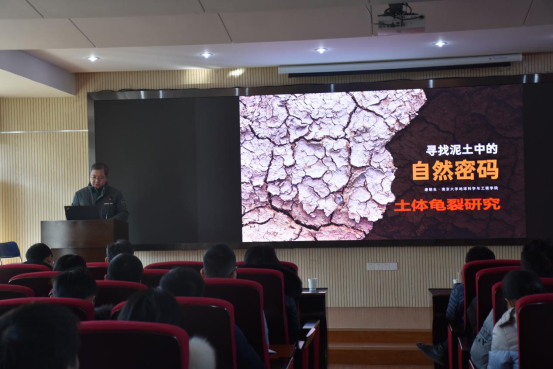 (通讯员:张海宽 黄静 摄影:王灿 黄静)2021年1月8日下午2点半,南京大学唐朝生教授作客工程文化论坛,在工程楼418报告厅为母校师生作了题为“寻找泥土中的自然密码:土体龟裂研究”的学术报告。安博电子官方网站院长焦玉勇教授、副院长王亮清教授、窦斌教授、党委副书记江广长老师、段隆臣教授、李长冬教授以及安博电子官方网站、三峡中心、《地质科技通报》编辑部等近200名师生代表参加了此次学术报告会。王亮清教授主持了此次学术报告会。