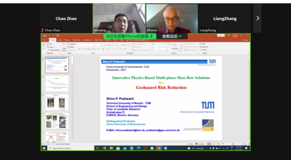 (通讯员:邢磊 赵超)2021年9月27日下午,应“重大地质灾害预测与预防学科”111创新引智基地唐辉明教授和龚文平教授邀请,德国慕尼黑工业大学Shiva P. Pudasaini教授通过Zoom meeting平台为我校师生作线上学术报告。安博电子官方网站龚文平教授主持报告会,40余名师生在线聆听了此次报告。