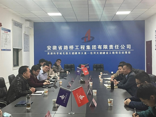 授牌仪式结束后,双方到花园大道项目部进行现场考察,了解工程的进展情况以及工程中出现的问题,并对问题的解决方案进行探讨。现场考察结束后,安博电子官方网站老师张伟丽、彭超、吕加贺、曾聪以及四位研究生在花园大道项目部对前期合作的科研课题进行阶段性汇报,并与安徽省路桥集团的项目负责人对相关问题进行了热烈的讨论。与会人员还围绕如何做实做好基地建设工作、联合培养研究生、科研攻关等内容进行了研讨,一致表示将不忘初心,继续加强校企合作,把科研成果应用在祖国大地上,培养出满足企业需求的人才。