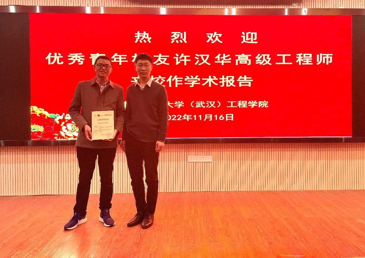邹俊鹏特任教授对报告进行了总结发言,向许汉华高级工程师颁发了中国地质大学(武汉)70周年校庆系列学术活动工程文化论坛特邀报告证书,并合影留念。
