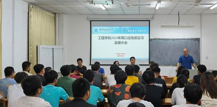 27日晚,学院在基地举行2023年周口店地质实习总结大会,实习队长葛云峰主持会议。张明教授作为教师代表对28天以来的实习情况进行总结,他充分肯定了全体实习学生在野外求知问道的积极态度,如数家珍地表扬了学生在野外实习过程和完成考核任务期间的优异表现。李红丽、高晓东和实习教师共同为优秀实习学生颁发荣誉证书。优秀实习学生代表黄宇馨深情汇报了自己的实习收获与体会,她感谢实习教师的指导和同学们的支持,深刻感悟到“纸上得来终觉浅,绝知此事要躬行”的道理,抱定为地质事业奋斗终身的坚定信念。